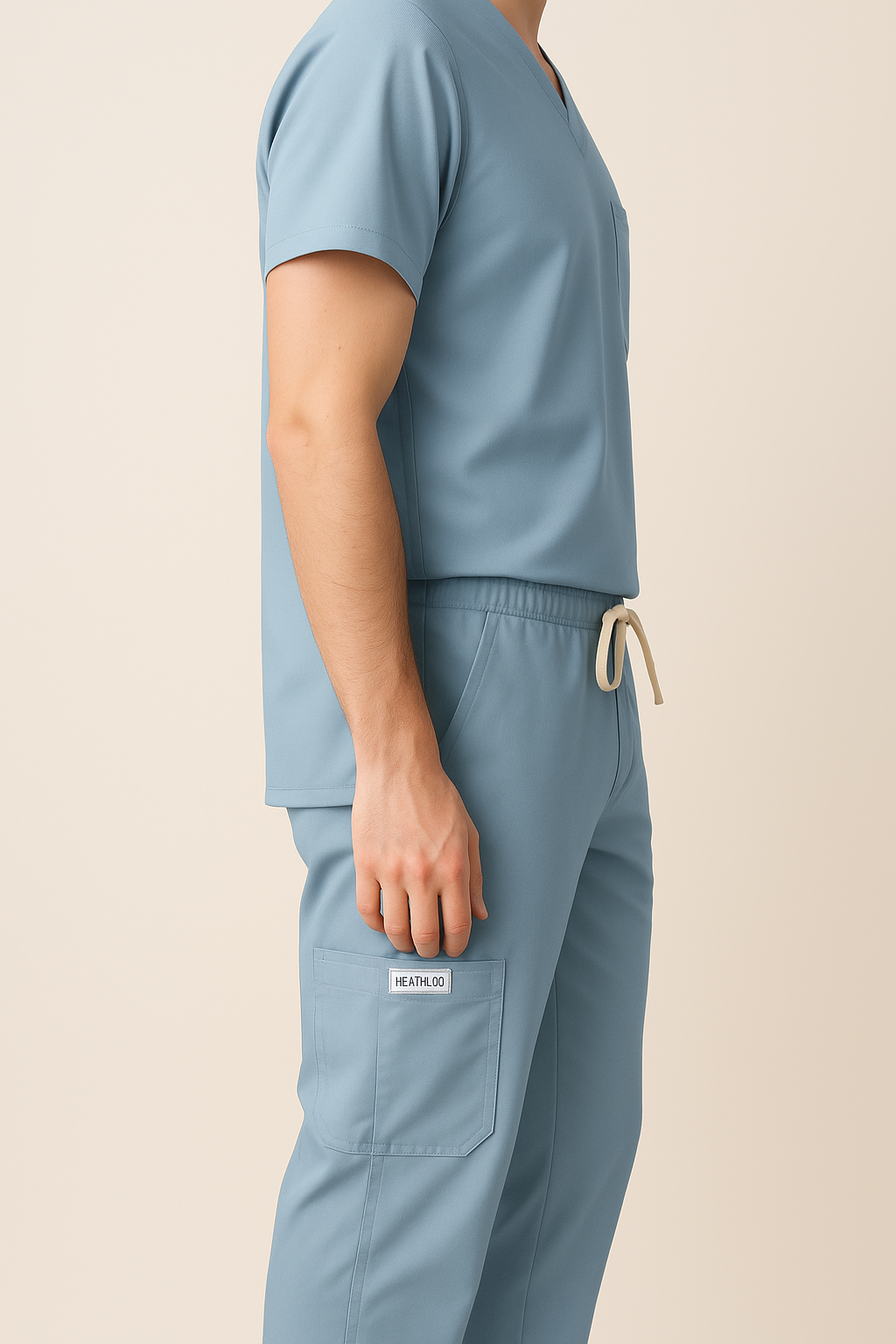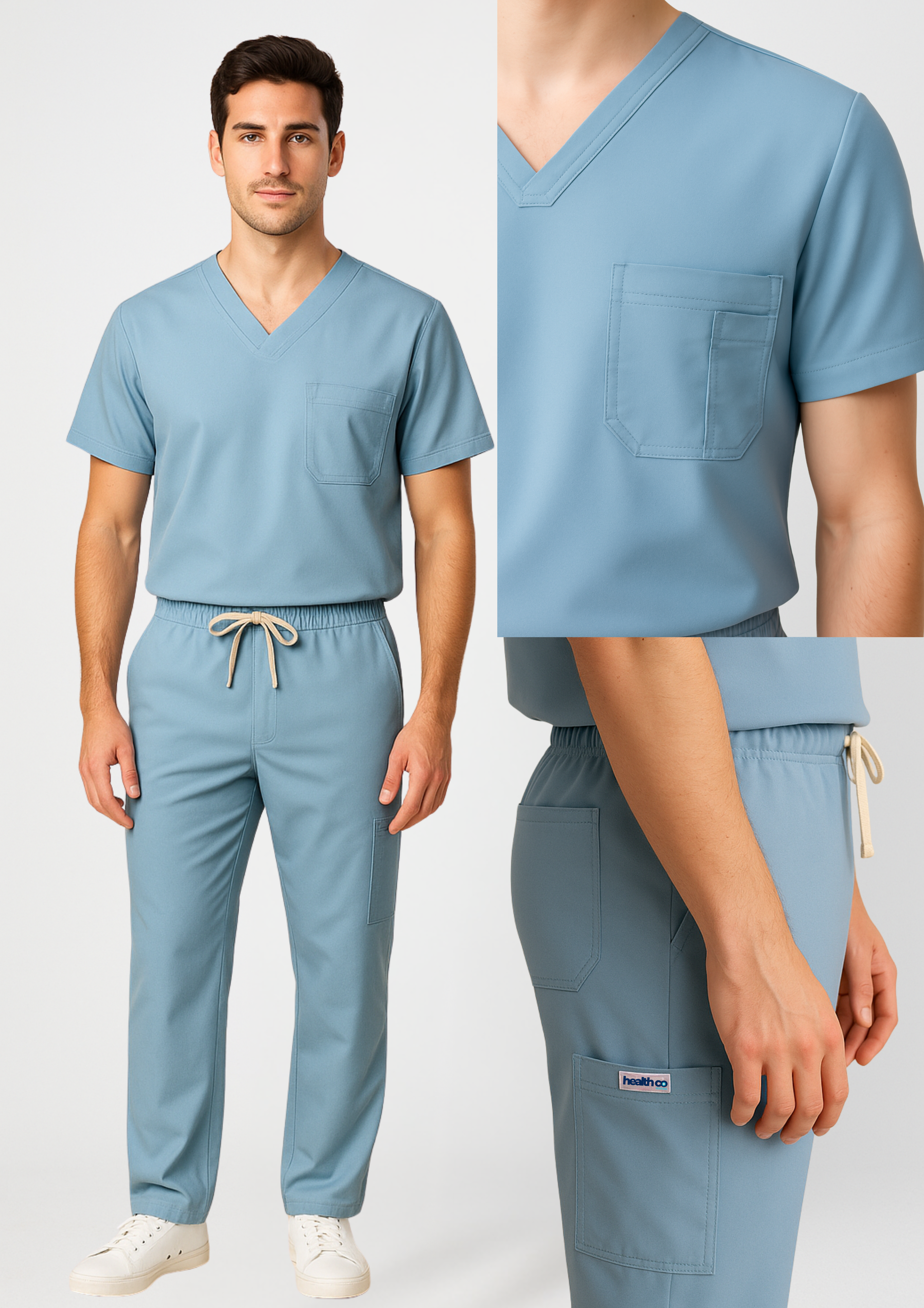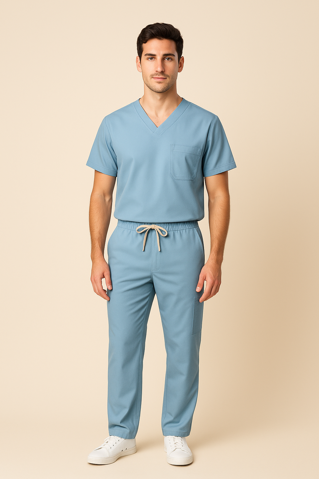 Scrub con camiseta con bolsillo en el pecho con compartimentos, dos bolsillos laterales en el pantalón y uno en la media pierna!